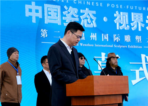 中国雕塑学会会长曾成钢在致辞中强调,要坚定文化自信,牢牢把握社会主义先进文化前进方向,激发全民族文化创造活力,更好构筑中国精神、中国价值、中国力量;要践行绿水青山就是金山银山的理念,坚定走生产发展、生活富裕、生态良好的文明发展道路,建设美丽中国。新时代,重点是解决人民群众对美好生活的追求问题。近年来,文化和旅游系统着眼满足人民群众对精神文化生活的新期待,以高质量文化供给增强人民群众的文化获得感、幸福感。中国姿态·黄石山雕塑公园正是孕育于这一背景下,同时也是温州生态立市、绿色惠民、建设“美丽温州”和加快文化产业发展的重要举措2019“中国姿态——视界未来”第二届温州国际雕塑大展在延续“中国姿态”脉络的同时,一方面将温州精神加以提炼、升华,另一方面以眼谷“视界未来”为切入点,从温州的发展看中国的发展,以世界的眼光审视发展中的温州。温州以自信自强、开拓进取和创业创新的“温州精神”赢得了世界的赞誉。“温州精神”可以概括为“历尽千辛万苦,言尽千言万语,想尽千方百计,走过千山万水。”“温州精神”是温州人民深处的灵魂所在,是哲学、人文、艺术诸因素综合的结晶。大展的举办使温州有了一种更为当代的文化载体,经过两届展览,黄石山生态区域的艺术氛围得到提升,雕塑公园的文化内涵得到升华,浙南文化的当代价值得以凸显。温州的雕塑建设在规模和质量上取得新进展的同时,进入到一个崭新的管理和运营阶段。落地的雕塑集思想精深、艺术精湛、制作精良于一体,正建构着当代雕塑的中国姿态与品格。温州中国姿态黄石山雕塑公园正成为坚定文化自信,传承中国精神,构建中国价值,展现中国姿态和建设美丽中国的典型样本。温州的城市雕塑建设刚刚起步,相信,户外雕塑展的连续举办,对提升温州城市文化品位、推动城市绿色发展、满足群众美好生活需求具有积极的推动作用。中国雕塑学会在全国城市各地连续举办了几个雕塑公园,走出了自己的办法和思路,总结为芜湖模式、郑州标准,今天提出温州精神、中国经验,正以中国姿态走向未来。