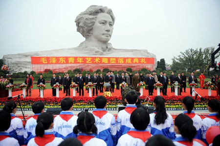 毛泽东青年艺术雕塑在湖南长沙市橘子洲景区正式揭幕